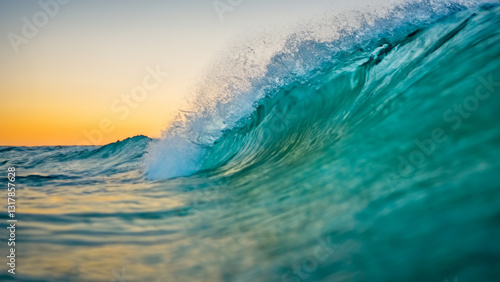 Inside a breaking wave. A split moment of beauty. Sunset.