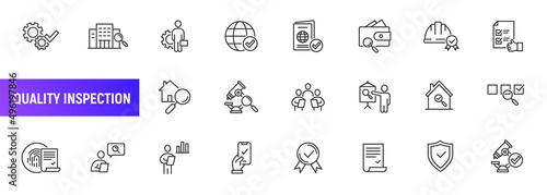 Inspect quality research line icon. Check examine list control safety risk analysis inspect stroke icon