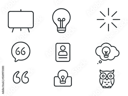 Inspirational Icons Set. Outline vector icons of inspirational quotes and messages: message board, light bulb,