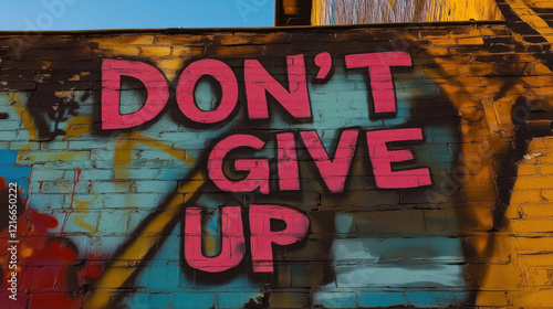 Inspiring street art displaying a motivational message in an urban setting during sunset hours