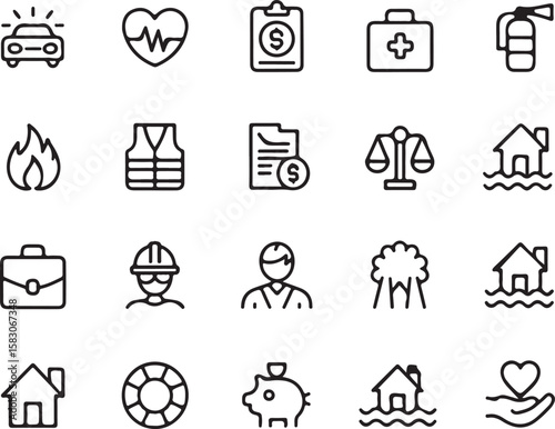Insurance and safety icons set of heart money