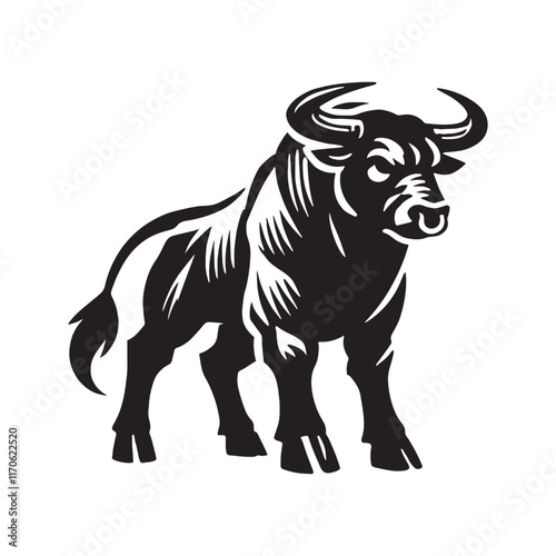 Intense angry ox silhouette for creative digital applications - Angry ox black vector