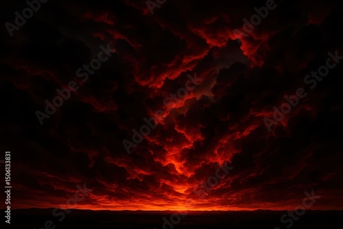 Intense Fiery Red Sunset Sky with Dramatic Clouds, Evoking Concepts of Conflict