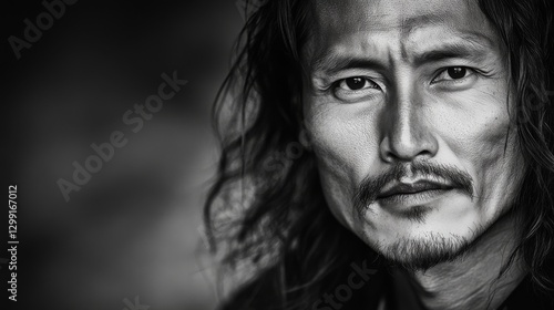 Intense portrait of a man with long hair, showcasing emotions in a blurred background setting