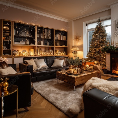 Interior Design of a Modern House during the Christmas Event. Warm and Welcolming House.