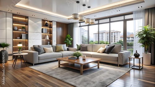 Interior of a modern living room , cozy, home, design, decoration, stylish, comfortable, furniture, contemporary