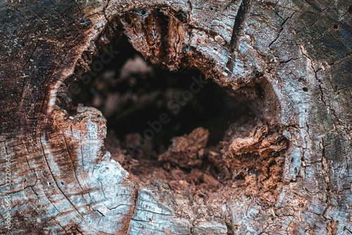 Interior of a rotten trunk of a tree
