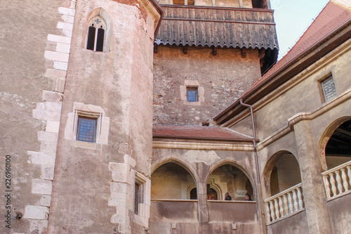 Interior of medieval Corvin Castle or Corvinilor or Hunyad Castle in Hunedoara, town in beautiful Transylvania, Romania.