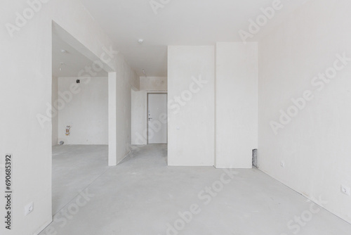 interior of the apartment without decoration in gray colors. rough finish