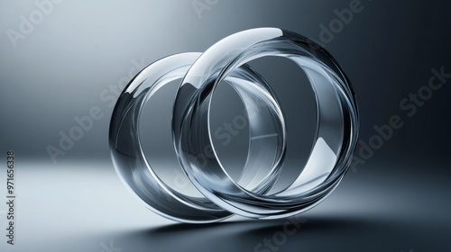 Interlocking circles and arcs. Geometric shapes in glass morphist style. Abstract vector design elements. 3D generative ai