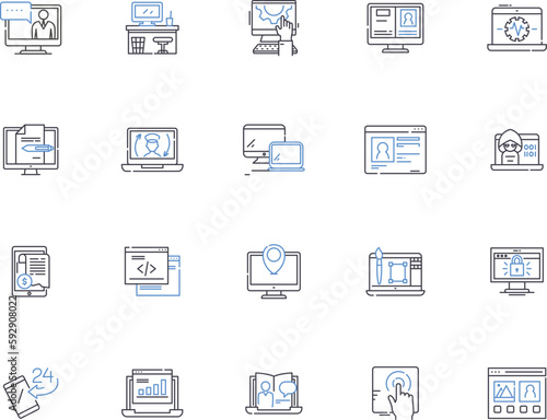Internet outline icons collection. Net, Web, Online, WiFi, Webbing, Cyberspace, Networking vector and illustration concept set. Bandwidth, Streaming, Email linear signs
