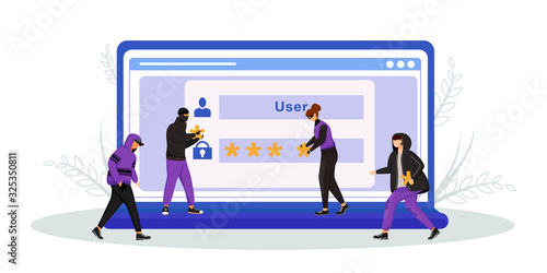 Internet scam flat concept vector illustration. Password, identity theft 2D cartoon characters for web design. Cyber security. Personal data protection. Online fraud creative idea.