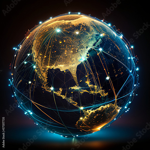 Internet users around the globe. Wires, 3D 4K, subtle, creative illustration.