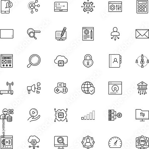 internet vector icon set such as: live stream, web page, dialog, letter, loupe, modem, heart, calculation, source, hand, audio, cyber, touchscreen, game, measure, car, geography, corporate, plugin
