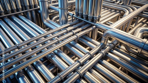 Intersection of pipes at different angles showing connections, pipes, intersecting, angles, connections, network
