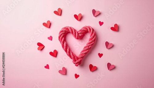 Intertwined pink heart surrounded by smaller hearts, love symbol
