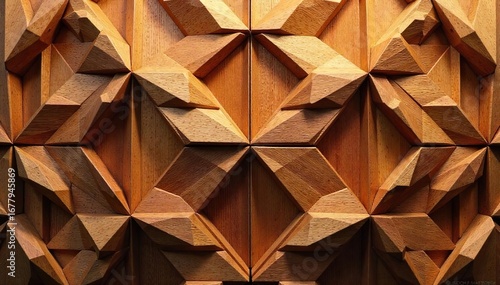 Intricate geometric patterns crafted from rich, warm-toned wood create a stunning visual display of texture and form Perfect for design, architecture, and craft projects , tan, shapes