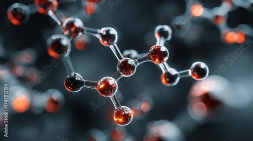 Intricate molecule structure with vibrant glowing red atoms and clear connections on a dark background.