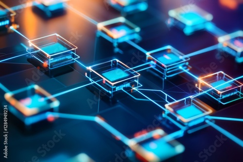 Intricate network of digital circuitry showcases glowing nodes and connections, illustrating advanced technology and innovative design in a modern setting. Generative AI