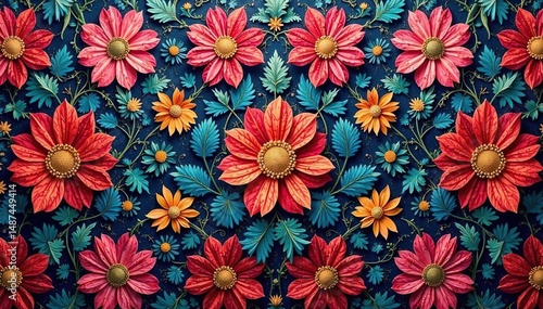 Intricate textile sample with repeating floral motif , trend, ornate, elegant