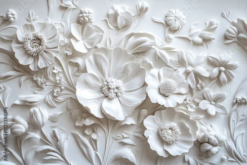 Intricate White Bas-Relief Floral Sculpture: A Delicate Masterpiece of Artistry Embellishing the Wall