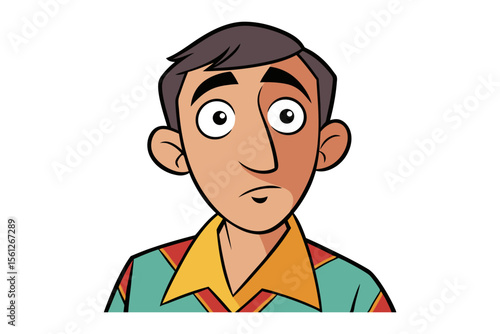 Intrigued Portrait: A striking cartoon depicts a man with thoughtful expression, set against an uncluttered backdrop, with a strong focus on face's details.