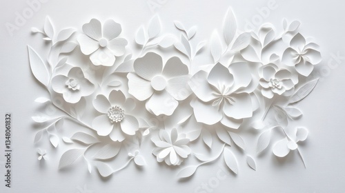 Invitation mockup, blank white paper with paper cut blossom and flowers. Woman's day, 8 march, Easter, Mother's day, anniversary greeting cardflowers and