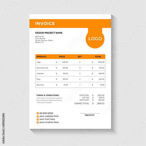 Invoice minimal design template. Bill form business invoice accounting