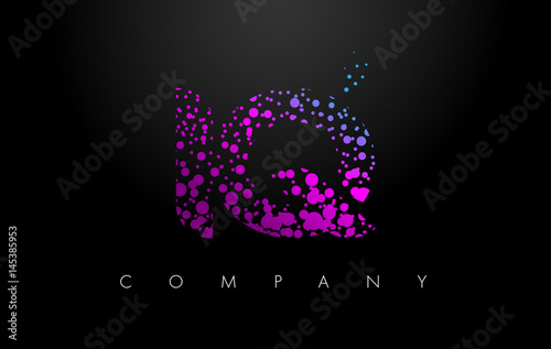 IQ I Q Letter Logo with Purple Particles and Bubble Dots