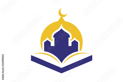 Islamic Education Logo with Open Book and Mosque Elements, Islamic logo vector illustration, logo design