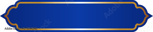 Islamic Ramadan golden frame. Arabic vector design with Turkish ornament and blue background. Arabesque ribbon sticker for tag banner and sale flyer.