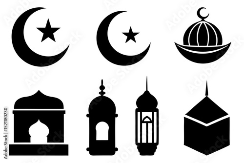 Islamic Symbols Crescent Star Mosque Lantern Icons