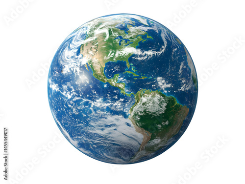 Isolated 3D Realistic Illustration Of Planet Earth Globe With Transparent Background
