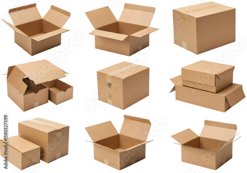 Isolated 3D Rendering Cardboard Boxes on Transparent Background