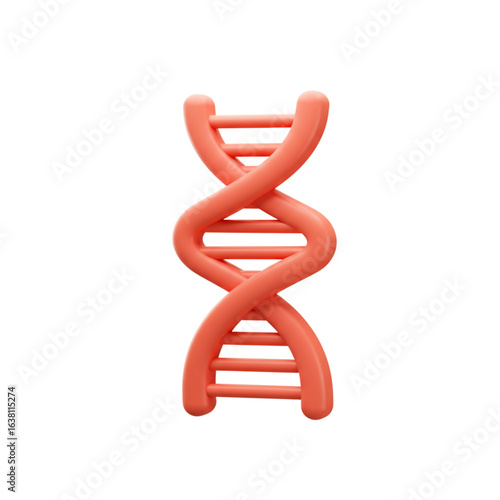 Isolated 3d rendering of a dna double helix model in coral color on a white background