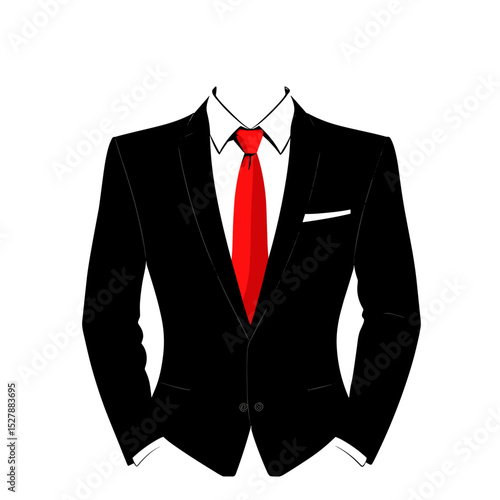 Isolated Black Suit with Vibrant Red Tie and White Pocket Square Formal Attire for Business and Special Occasions