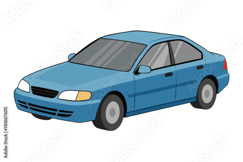 Isolated Blue Sedan Illustration Vehicle Design Automotive Transport Car Cartoon