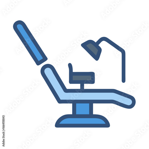 Isolated graphic illustration of blue dental chair with lighting