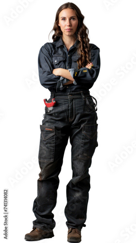 Isolated on white Background, transparent: Empowered Femme Fatale: Captivating Female Mechanic Exuding Confidence