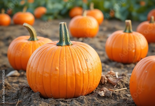Isolated orange pumpkin in the field, harvesting pumpkins