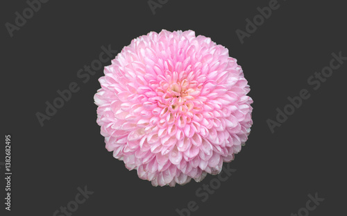 Isolated pink chrysanthemum or pompom flower head with clipping paths.