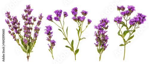 Isolated Purple Flowers Displaying Green Stems Against Transparent Background With Detailed Macro Shot And Natural Bloom Elements