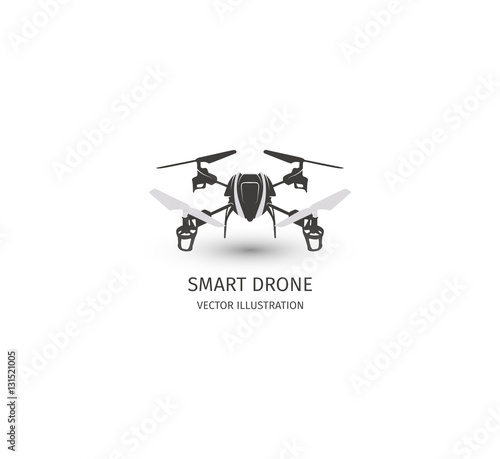 Isolated rc drone logo on white. UAV technology logotype. Unmanned aerial vehicle icon. Remote control device sign. Surveillance vision multirotor. Vector quadcopter illustration.