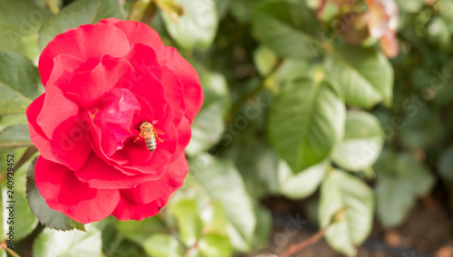 Isolated Rose with a Bee on it. Background.