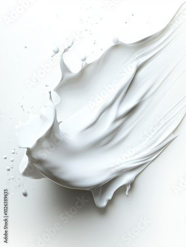 Isolated Smear of White Paint and Cream on White Background for Cosmetic and Skincare Branding
