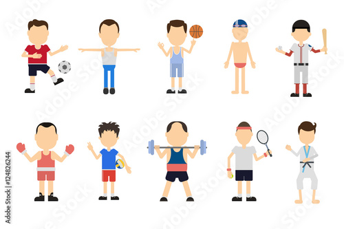 Isolated sport set on white background. Different kinds of sport like volleyball, boxing, swimming, basketball and more.