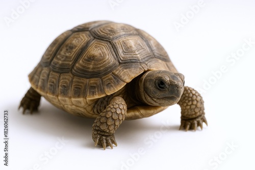 Isolated tortoise showcasing detailed shell texture and gentle expression against a clean white backdrop