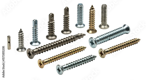 Isolated Various Metal Screws Hardware Fasteners Metallic On Transparent Background