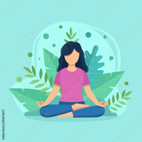 Isolated Vector illustration of Woman Meditating. Yoga, Meditation, Relax, Recreation, Healthy Lifestyle.