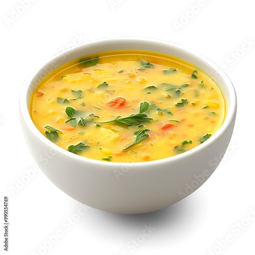 Isolated yellow lentil soup on white